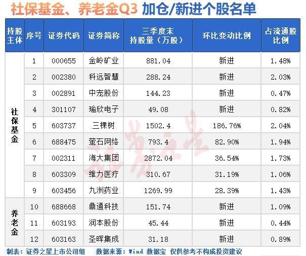 财报季,社保基金、待业金持股动向曝光。在三季度市集大涨之际,社保基金、待业金积极着手,对一批个股建仓,同期也对部分已持有个股大举加仓。