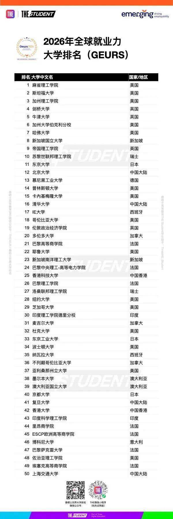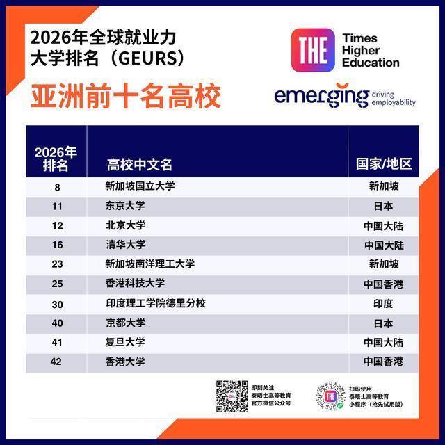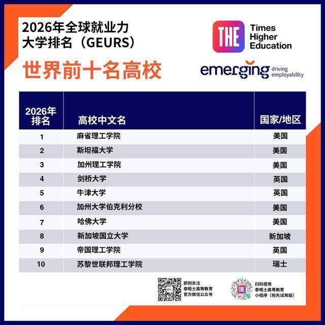读大学的意旨远不啻于作事准备,但选拔允洽的院校与专科确乎能大大提高毕业生的管事远景。 由法国商量公司Emerging汇注数据,并与泰晤士高级熟谙(THE)共同发布的寰球管事力大学名次(GEURS)揭示了寰球顶尖企业招聘官心目中最能培养学生职场竞争力的大学榜单。 寰球管事力大学名次(GEURS)不仅反应了高级熟谙的骨子遵守,更突显了东谈主才培养与职场需求之间的契合历程。在管事环境快速变化的今天,大学能否为学生作念好作事准备,已成为掂量其价值的迫切标尺。 本次上榜的250所大学遍布寰球42个国度和