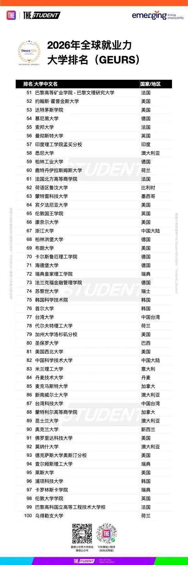 由法国商量公司Emerging汇注数据,并与泰晤士高级熟谙(THE)共同发布的寰球管事力大学名次(GEURS)揭示了寰球顶尖企业招聘官心目中最能培养学生职场竞争力的大学榜单。